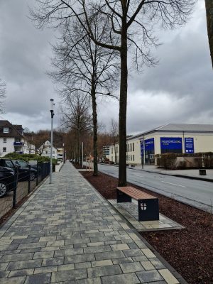 Im Bereich Finnentroper Straße Mitte wird der Bereich Allee-Center mit der Altstadt verknüpft, indem die Gestaltung als breiter Boulevard fortgeführt wird und gleichzeitig innenstadtrelevanter Parkraum geschaffen wird, der durch Baumreihen rhythmisiert ist.